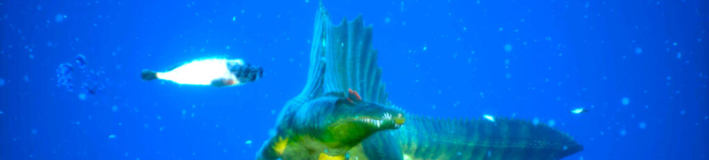 全長は約15メートルにも及び、その特徴的な帆状の背骨と長く強力な腕で知られています。